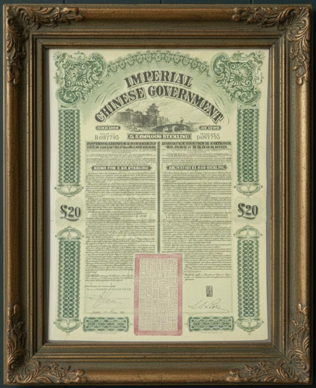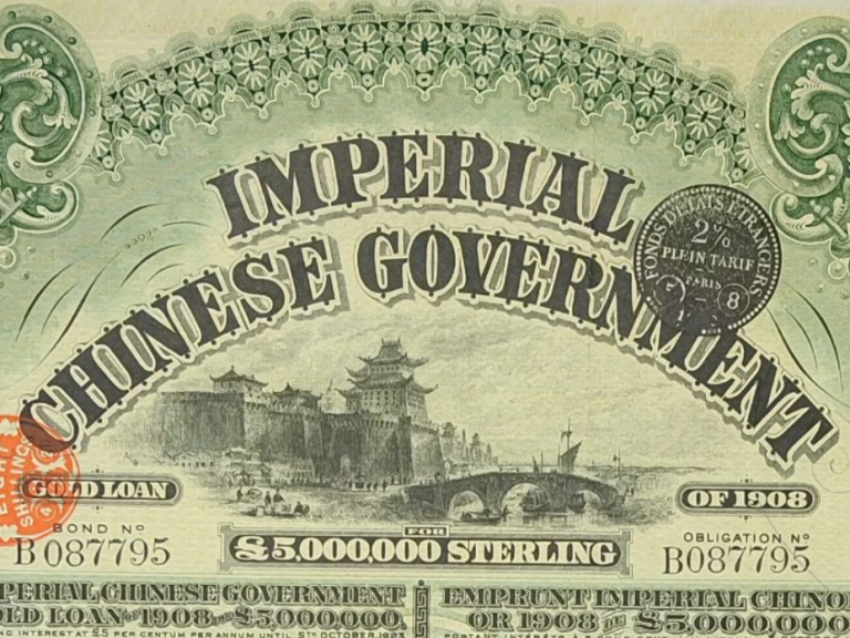 1908 Gold Loan Bond” issued by The Imperial Chinese Government (Qing Dynasty)
