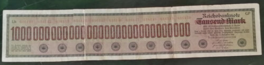 1922 GERMANY Notgeld large cloned fantasy note, satire on hyper-inflation. 1,000 REICHSMARK Marks X 10
