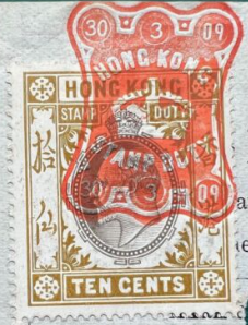 Hong Kong KEVII 10c Revenue Stamp Duty Full Embossing
