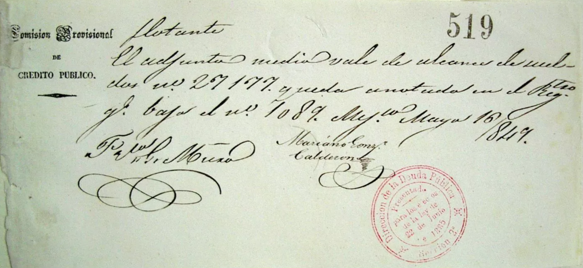 1849 Mexican Comision Prousion Handwritten Banknotes. And also, those hand-drafted bank documents are the predecessor of the modern cheques.