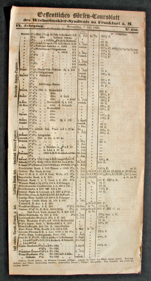 1859 Frankfurt Stock Exchange,
