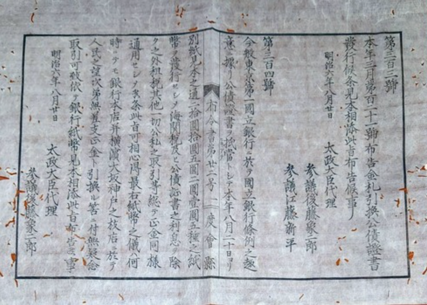 - 1874, Decree of Public Bonds Regulation.