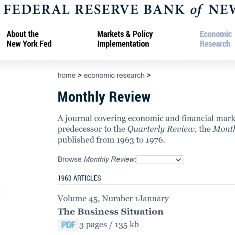WEFA has a collection of the US Federal Reserve Bank of New York's Monthly Report, issued from 1958 to 1975, which is 5 years earlier than the reports that the Federal Reserve Bank itself has on its official website. (1963).